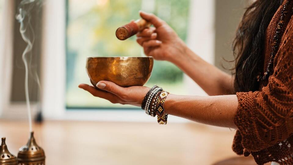 In shavasana pose, you will be fully supported by blankets while you listen to a guided meditation which is followed by a sound bowl session to stimulate auditory senses while in a deeply relaxed state.